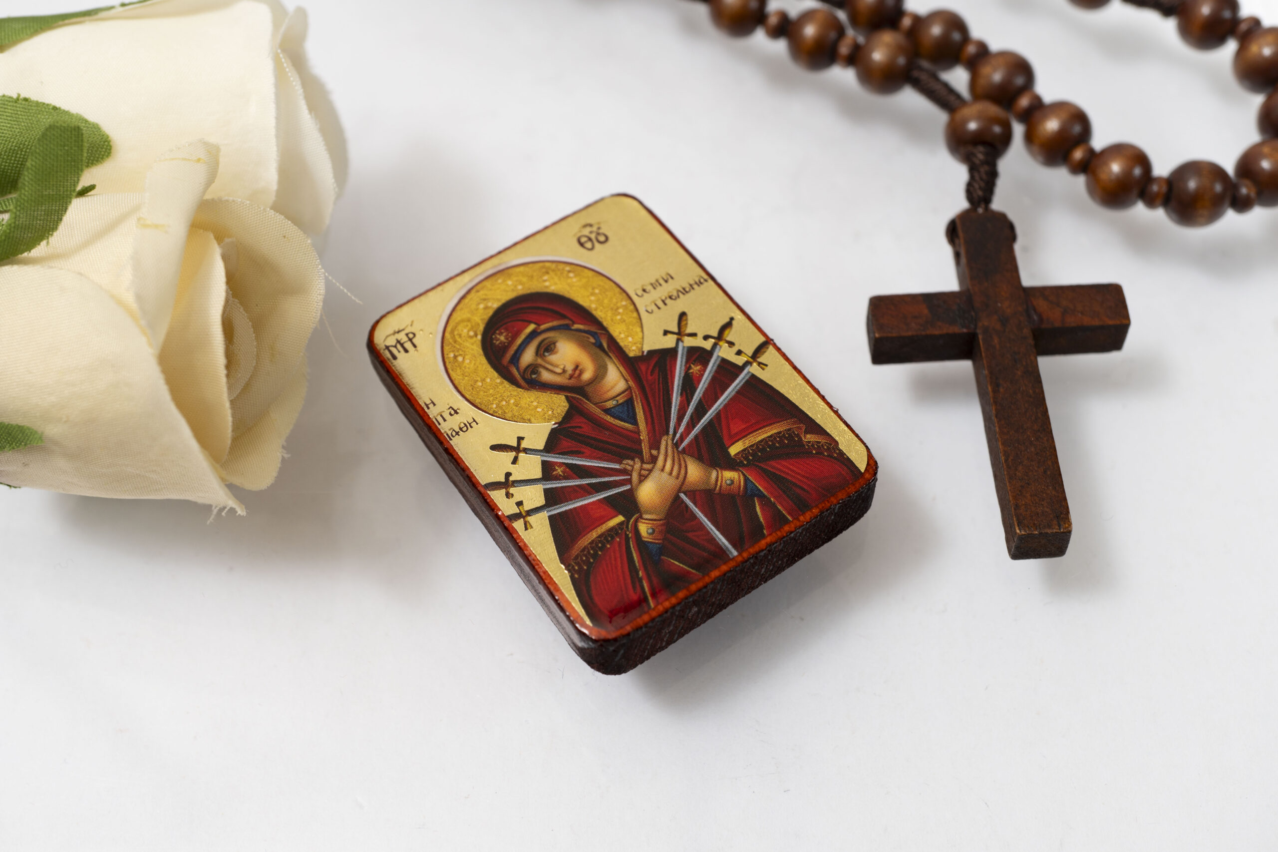 Be the first to review “Virgin Mary of seven Swords Miniature Handmade Wooden Icon so small that you always have it with you”